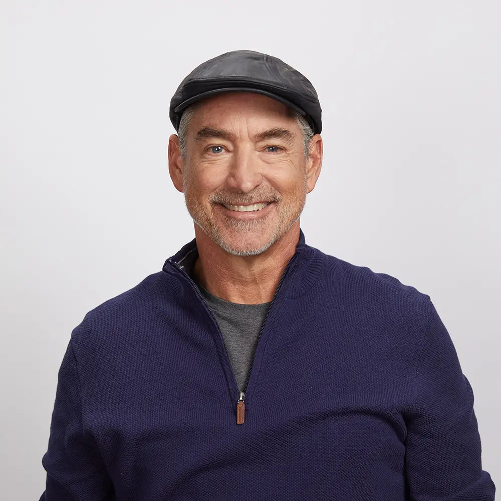 Bookie | Mens Leather Flat Cap combines classic style with a sleek leather finish. Made from lightweight cowhide leather, this 4-panel ivy cap features a stitched peak, perfect for men seeking a refined, timeless look.