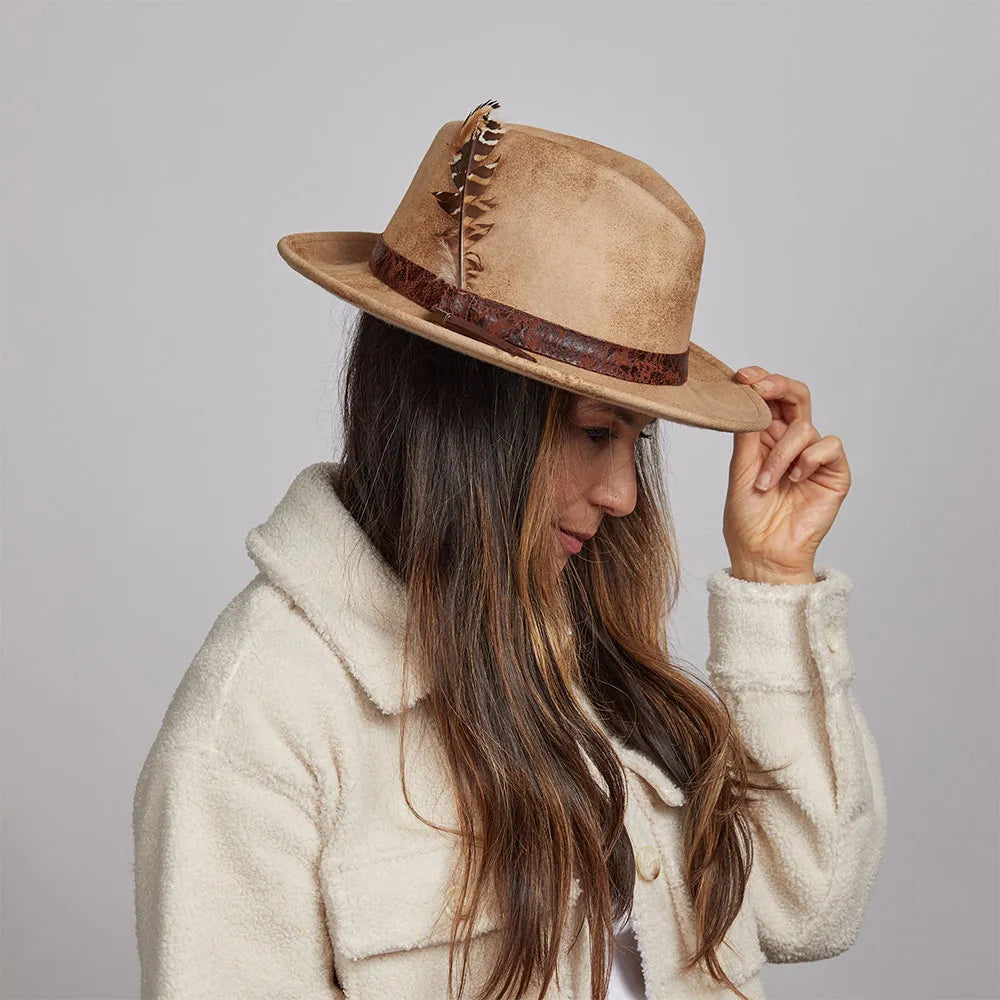 Bootlegger | Womens Felt Fedora Hat adds bold sophistication with its wool felt construction and feather trim. Perfect for adding a touch of elegance to any outfit.