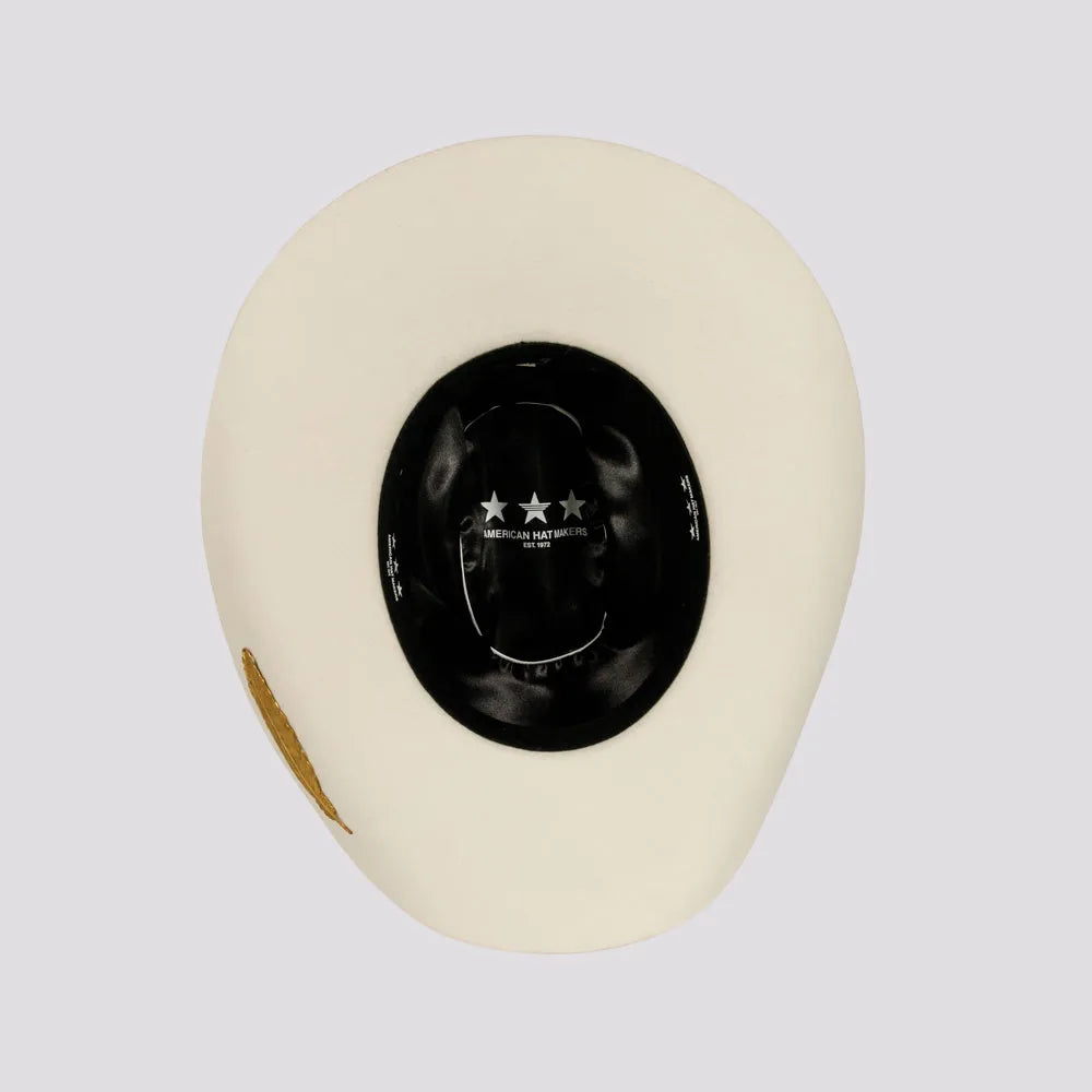 Lizzie | Womens White Felt Cattleman Cowgirl Hat with Gold Feathers and Concho